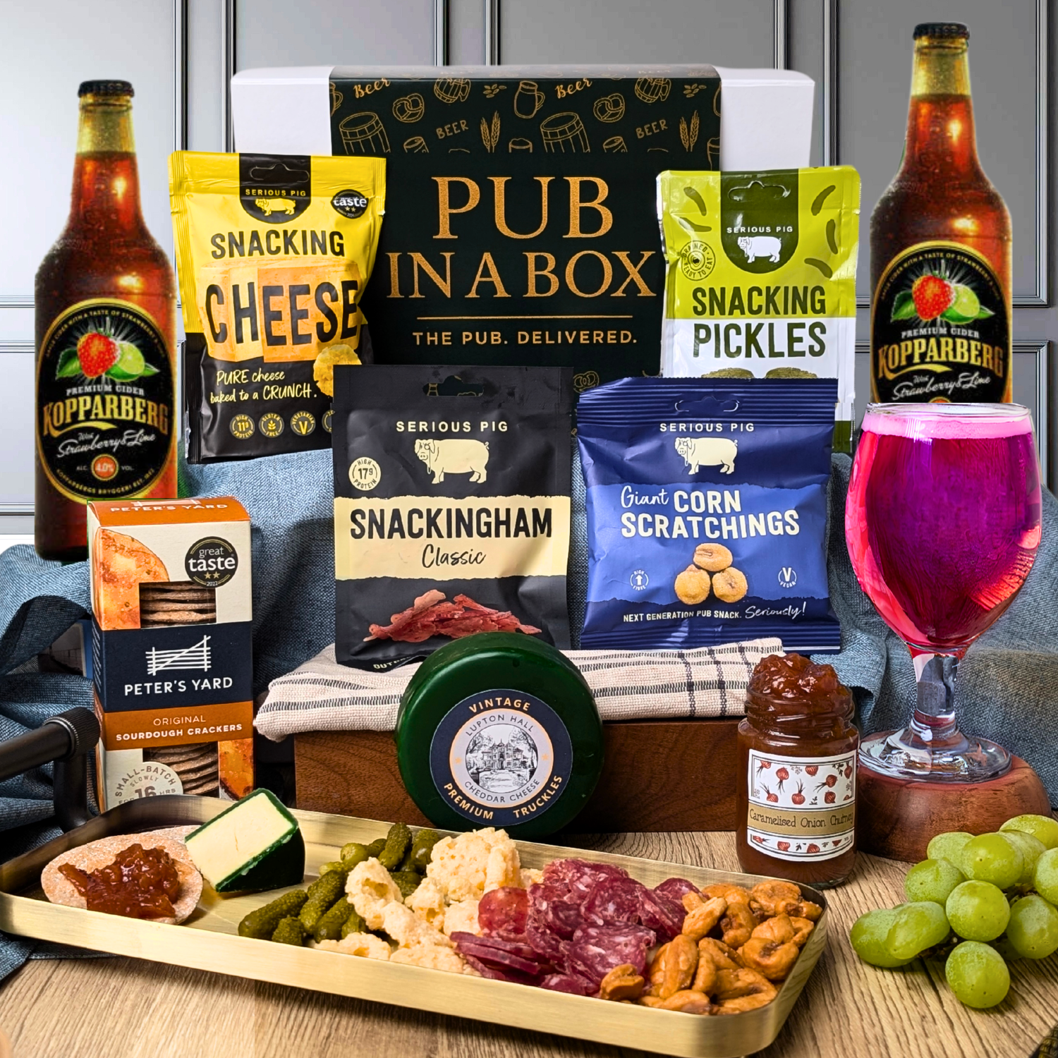 We’ve packed it with flavourful, pub-style snacks too – including oven-baked Italian cheese bites, air-dried British pork Snackingham, giant crunchy corn scratchings, and tangy baby gherkin pickles. Each one is made for grazing and pairs perfectly with crisp, refreshing cider.